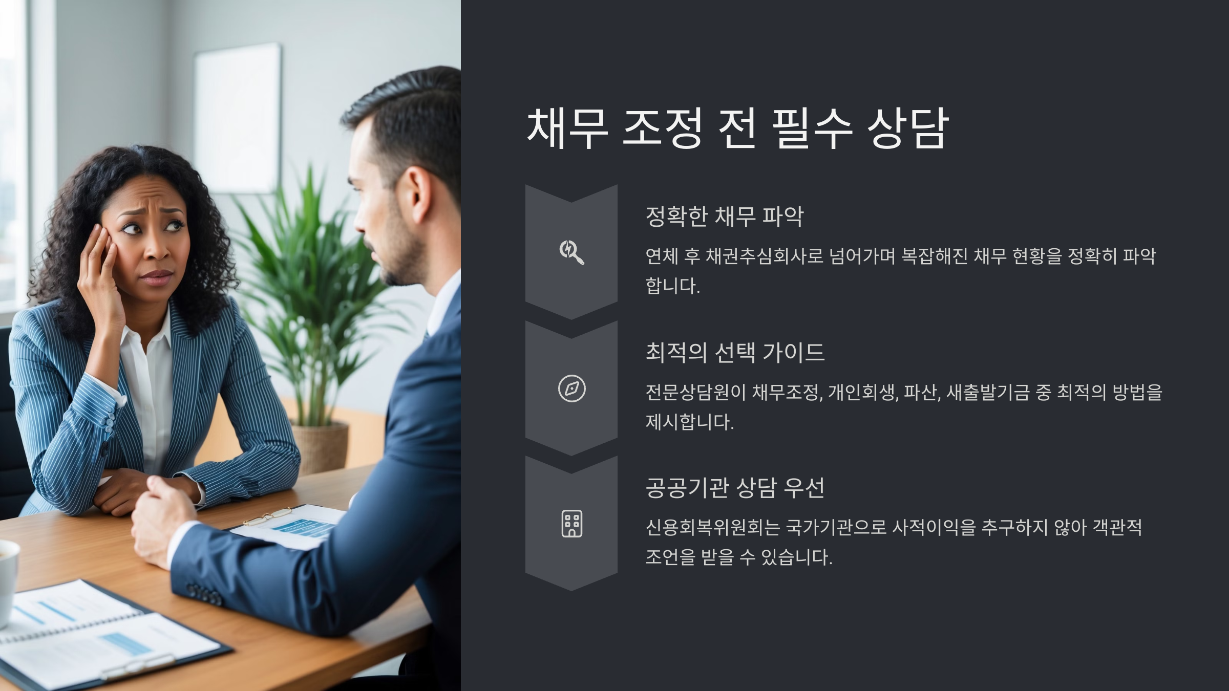 그래서 채무조정 전문가에게 조언을 듣는 과정이 꼭 필요합니다.