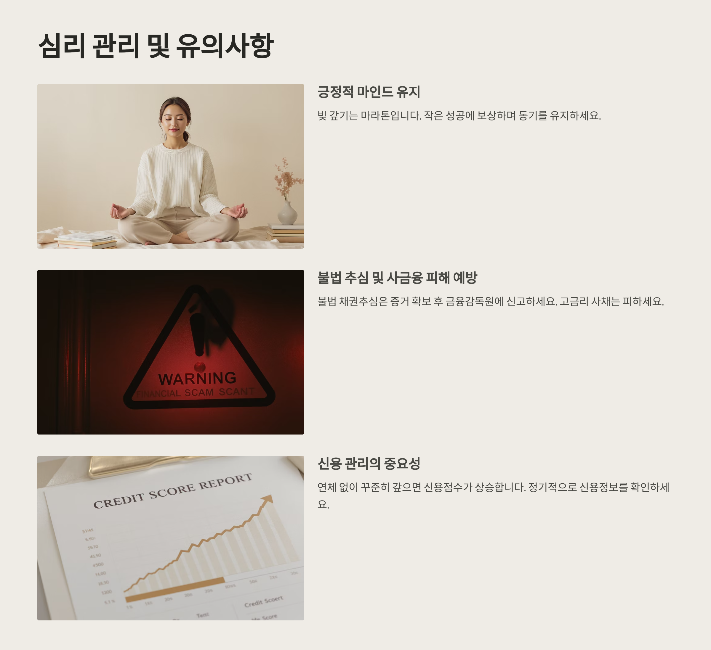 IV. 빚 갚는 여정, 마음 건강도 챙기세요! - 심리 관리 및 유의사항
